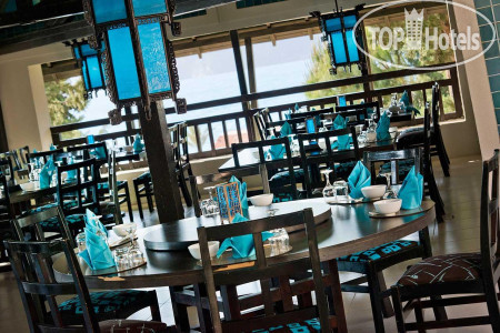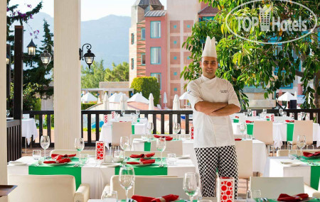 В основном ресторане еда так себе, выбор гораздо скуднее, чем в Liberty Lykia HV-1, зато нет шума. Удобные небольшие залы, хорошая сервировка. Однако официанты столы убирать и разносить воду-напитки не торопятся. Кофе вкусный. Вина среднего качества, остальной алкоголь во всех барах достойный, фирменные коктейли вкусные. Горячие (чай кофе) и любые другие напитки здесь в свободном доступе (в отличие от HV-1).