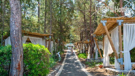 Территория: здесь необычность заключается в том, что нет отелей-соседей. Какая-то удивительно приватная территория среди пиний и пальм. Рельефный ландшафт абсолютно не напрягает, впрочем, перепад высот не слишком большой. Обычно говорят, что на территории много зелени, здесь все, что не занято под постройки - это лес.