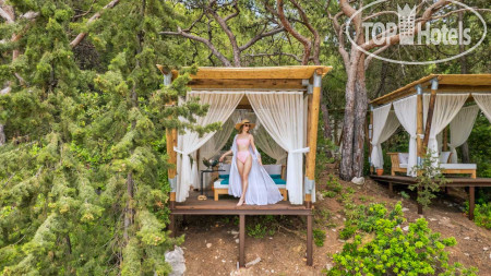 Отель очень хороший,не большая,но очень красивая и хорошо продуманная территория.Оригинальная концепция проведения вечернего шоу,вернее место проведения:сидите как бы в театре на воздухе под соснами,но вас обслуживает девушка из бара.У каждого свой столик получается.Очень приватно.