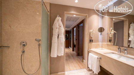 Встреча и заселение: на входе вас встречает представитель guest relation и, расположившись в удобных креслах, расспрашивает вас о пожеланиях по заселению (эти пожелания он сам доводит до сотрудников ресепшен). Во всех подробностях рассказывает о территории и услугах отеля. Тут же подключает ваши гаджеты к Wi-Fi и скачивает отельное приложение на телефон (очень нужная вещь, не отказывайтесь!). На ресепшен вы идете только за карточками-ключами.