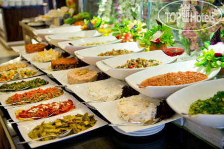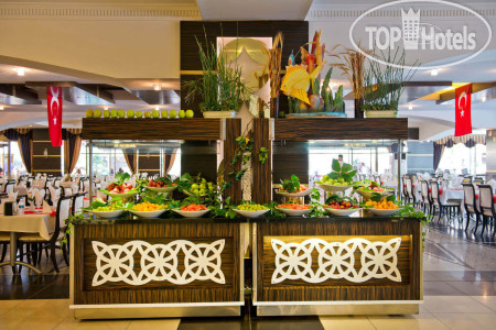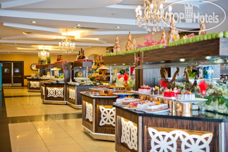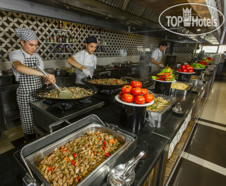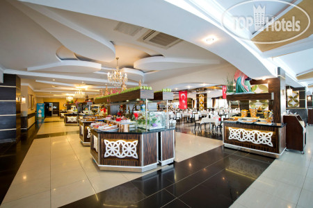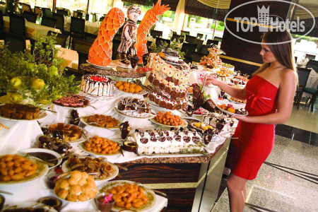 Что касаемо обеда и ужина всегда были супы 2 вида, неплохие. На ужин всегда были мангальные блюда: шашлычки, котлетки, нарезка как в донер, горячих блюд было предостаточно, штук 10-15 разных, от курицы до баранины. В четверг рыбный день, но на крабов так и не попали, были суши, но не очень
