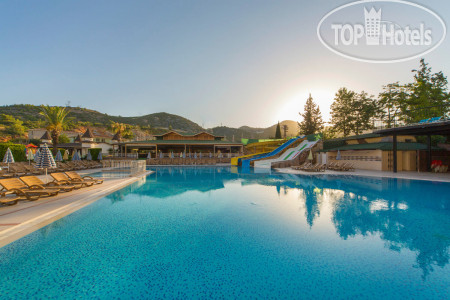 Отель прекрасно подходит для отдыха компанией. Расположение всего в самом отеле очень бестолковое (от развлекаловок, горок, детского клуба до пляжа нужно идти через весь отель). Еда выше всяких похвал (везде много и разнообразно на любой вкус). Номер - жуткая слышимость (лифты пиликают круглосуточно и за окном стрекачи на деревьях стрекочет тоже круглыми сутками). Плиты на пляже это не плюс, а вот заход с пирса хороший (еще б пирс сам не собирали б в буквальном смысле так часто). Купаться ходили с пирса другого отеля. Интересное предложение в отеле: бронь столика на весь период проживания - нам понравилось и не приходилось искать свободный стол на завтрак, обед и ужин в ресторане.аля карты достойные на берегу моря . Вернуться - не вернулась бы в данный отель, но для разового посещения за свою цену отель рекомендую. Команда анимации огонь - респект и уважуха! Сколько можно уже строчить этих символов я незнаю - всё отзыв короткий и отзыв короткий…:-) справляли др мужа в отеле - по ценам переобуваются на ходу прям: по приезду одну цену назвали, а когда подошел день назначенный сразу цена поменялась. В спа тоже профессионалы своего дела работают - советую!!!!!!! Вай фай в номере не оч хорошо ловит, а вот в лобби и на пляже в ресторане просто летает!
