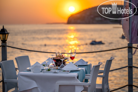 Места в ресторане предостаточно, есть на улице и внутри, особой толкучки не заметили, хотя были в самый сезон. Официанты работают хорошо, убирают во время, много посуды со сколами, иногда приходилось выбирать более-менее. В баре ресторана есть только пиво, вина: красное, белое и розовое, но они показались разбавленными и крепленными, коктейли не делали в ресторане. Пиво эфес хорошее.