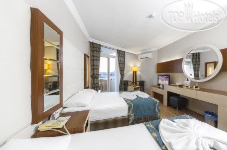 Номер по итогу оказался на 3 односпальные кровати, нас было 2 человека, хороший просторный, кондиционер работал без проблем, не сказал бы, что сильно уставший, нормальный. Мини бар пополняли когда как, когда каждый день, иногда через день, он бесплатный, там вода 1,5 литра, 2 маленькие газированные воды, сок 0,2. Полотенца меняли по необходимости, если клали на пол, постельное белье за 10 дней ни разу не сменили. Также есть в номере чайник и кофе с чаем. По ванной комнате у нас не хватало части двери от душевой, вода немного попадала на пол, но не критично. Вода горячая, холодная всегда была, сантехника в норме.