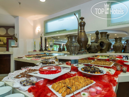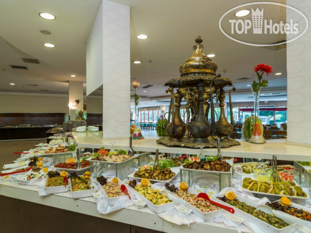 Если проживание в этом отеле более 10 ночей - посещение ресторана один раз бесплатно. Предлагается либо турецкая кухня либо рыбный день , чередуется через день. Мы выбрали рыбу