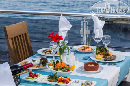 Все красиво , столы у моря закат, но еда мезе и салаты те же что и в столовой, за исключением основного блюда которое мы ждали 1,5 часа!