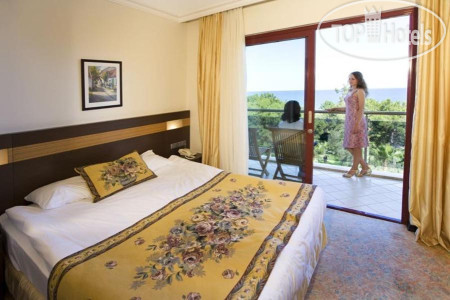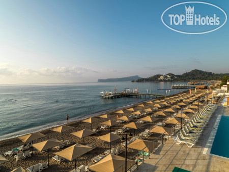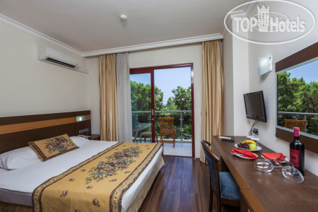 Отдыхали в отеле в конце октября 2025,отель оставил хорошее впечатление. Прилетели в 7 утра, ехать всего около часа до отеля, по приезду сразу, не дожидаясь 14 часов заселили в номер! Номер был оплачен с видом на море, но из-за деревьев его не видно) мебель, техника, все чисто, скромно правда, видно, что сделан ремонт, жили в корпусе А, правда были проблемы с сантехником. Окна выходят на бар, где музыка до ночи, но нам она не мешала. Красивая территория, море, горы, хороший заход в море, многие в коралказ, но мы босяком, массаж стопы! В отеле отдыхали русские, немцы, поляки, молдаванк, прибалты, в основном возраст 50+.По питанию также все без изысков, но вкусно, как везде много сыров, оливки, салаты, каждый день гриль индейка, курица, красная рыба. В снэк баре пицца, бургер, мороженое. На завтра из яиц глазунья и варёные, можно бы и омлет и шакшуку, запеканки добавить. Много десертов. Фрукты сезонные мандарины, дыня, виноград, яблоки, груши. Спиртное вкусное пиво, вино, коктейль, шампанского не было. Аниматор один, детской анимации нет, мини диско нет, но есть детская площадка. Шезлонги без матрасов, но конец сезона и всем хватало. Хочу отметить вежливый персонал, работают молодые ребята, наверное студенты, вежливые, не наглые, не пристовучие. Вообще отель оптимальный по соотношению цена качества. Отели с более высоким рейтингом и стоят на 30%дороже. Отдохнуть, искупаться, нормально поесть. У меня осталось хорошее впечатление, я бы и ещё сюда приехала!