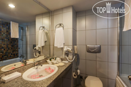Прилетели прекрасно, к ужину были в отеле, заселили сразу- третий этаж, номер 1217, рум тур прикреплю, одна двухспальная кровать и диван, для чего он, мы так и не поняли, наверно вещи складывать). Темный номер, освещение как в захолустном общественном туалете- почти отсутствует, лампы по бокам кровати и около зеркала, верхнего освещения нет совсем, самое светлое место- туалет)). Ванна к нашему приходу не мылась, мало того, что грязная, так еще вся в чужих волосах- буээ. Сказала на ресепшн- потом типа помыли, отодвинула шторку в ванной- а там черная плесень! Реально противно! ну понятно давно устал отель, но мыть то его необходимо- это уже вопрос о сервисе и об этом позже. В коридорах ковролин грязный, в пятнах, стекла не мыли наверно с момента сотворения мира- картину сильно портит это, красивый вид на море нужно постараться разглядеть через грязнющее окно!